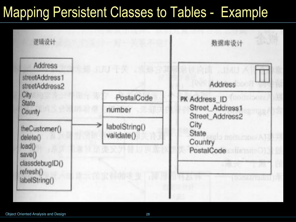 Steps • Map Persistent Design Classes to the Data Model • Optimize the Data Model for Performance • Optimize Data Access • Define Storage Characteristics • Define Reference Tables • Define Data and Referential Integrity Enforcement Rules • Distribute Class Behavior to the Database • Review the Results