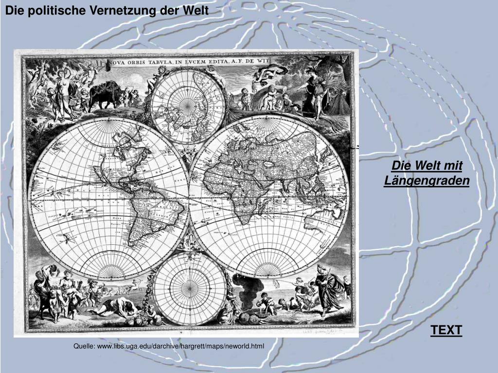 Die politische Vernetzung der Welt Die Welt mit Längengraden TEXT Quelle: www.libs.uga.edu/darchive/hargrett/maps/neworld.html
