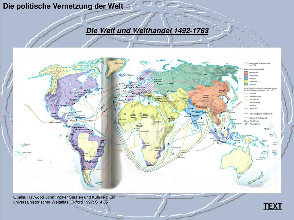 Die politische Vernetzung der Welt Die Welt und Welthandel 1492-1783 Quelle: Haywood John; Völker Staaten und Kulturen; Ein universalhistorischer Weltatlas; Oxford 1997; S. 4.05 TEXT