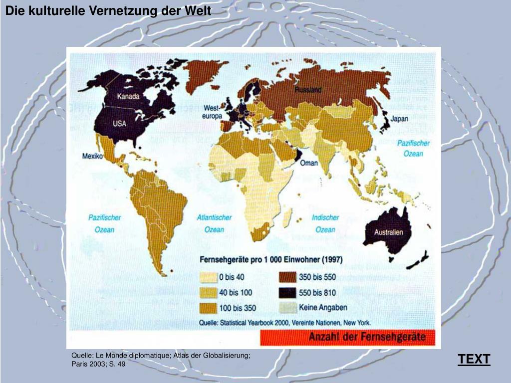 Die kulturelle Vernetzung der Welt Quelle: Le Monde diplomatique; Atlas der Globalisierung; Paris 2003; S. 49 TEXT