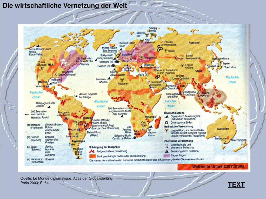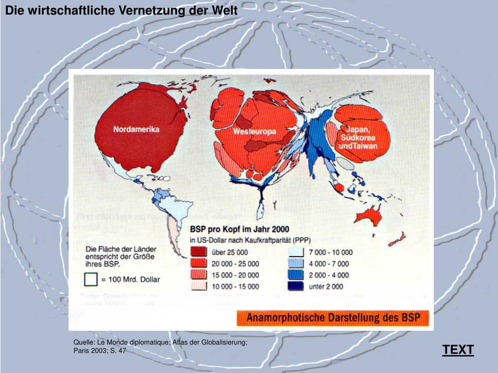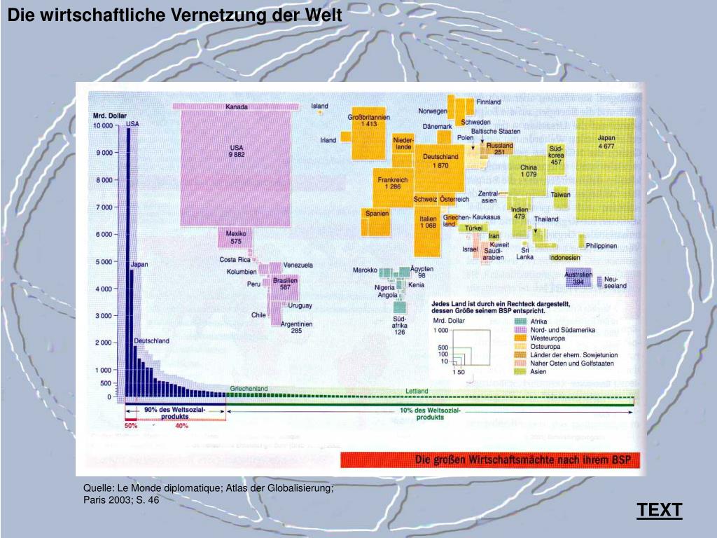 Die wirtschaftliche Vernetzung der Welt Quelle: Le Monde diplomatique; Atlas der Globalisierung; Paris 2003; S. 46 TEXT