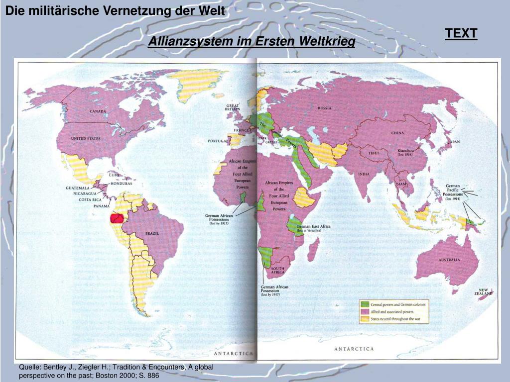 Die militärische Vernetzung der Welt TEXT Allianzsystem im Ersten Weltkrieg Quelle: Bentley J., Ziegler H.; Tradition & Encounters, A global perspective on the past; Boston 2000; S. 886