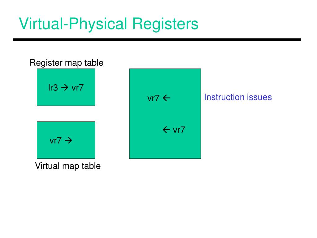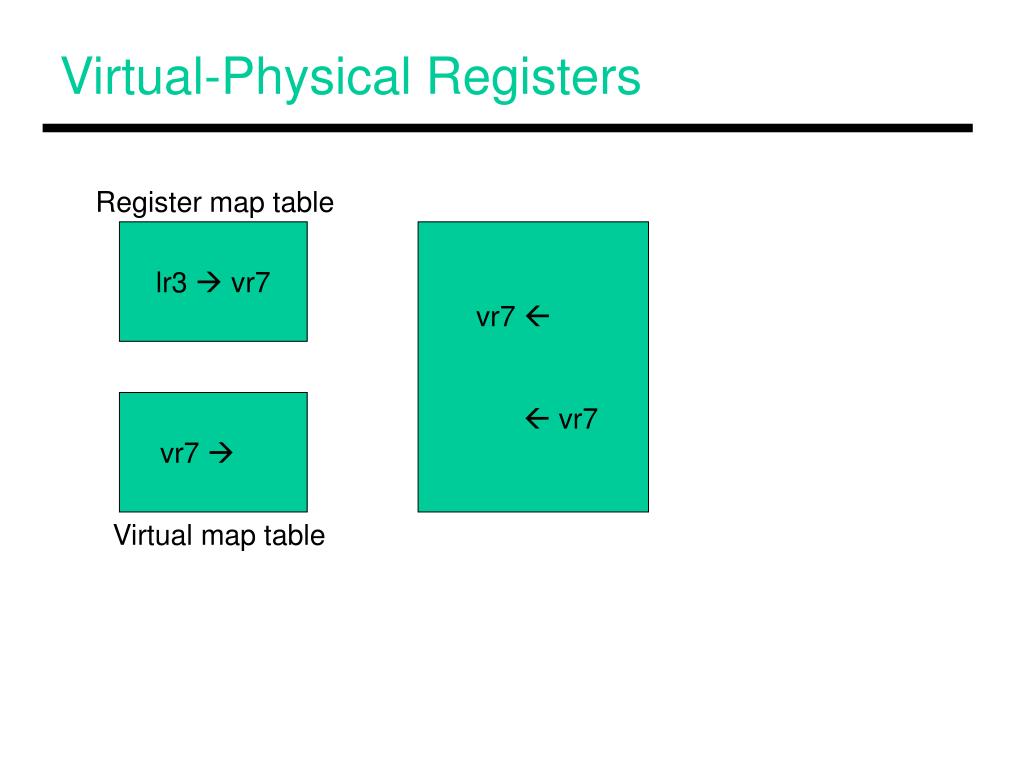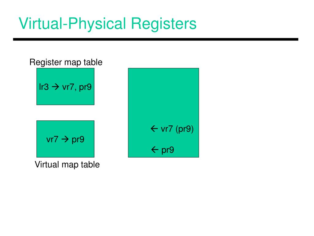 Virtual-Physical Registers Register map table lr3 vr7 vr7 vr7 vr7 Virtual map table