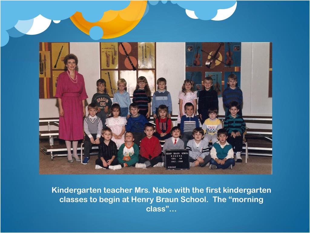 Kindergarten teacher Mrs. Nabe with the first kindergarten classes to begin at Henry Braun School. The “morning class”…