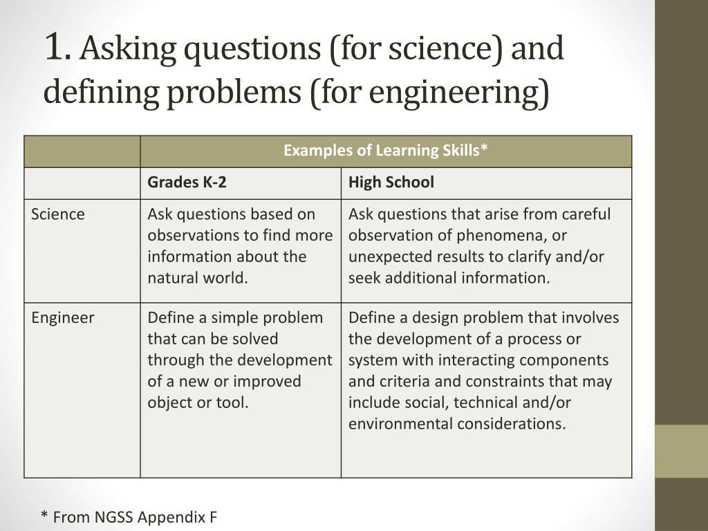 1. Asking questions (for science) and defining problems (for engineering) * From NGSS Appendix F