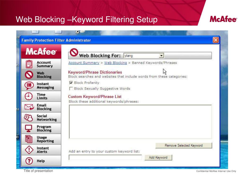 Web Blocking –Keyword Filtering Setup Title of presentation