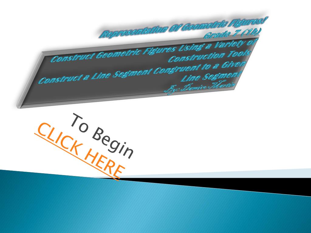 Representation OfGeometric Figures!Grade 7 (1b)Construct Geometric Figures Using a Variety of Construction ToolsConstruct a Line Segment Congruent to a Given Line SegmentBy: Damico Martin To Begin CLICK HERE