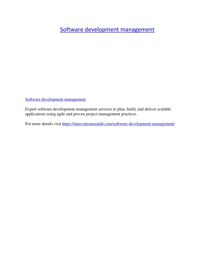 <br>Software development management<br>Expert software development management services to plan, build, and deliver scalable applications using agile and proven project management practices.<br>For more details visit https://innovationasialab.com/software-development-management/<br>