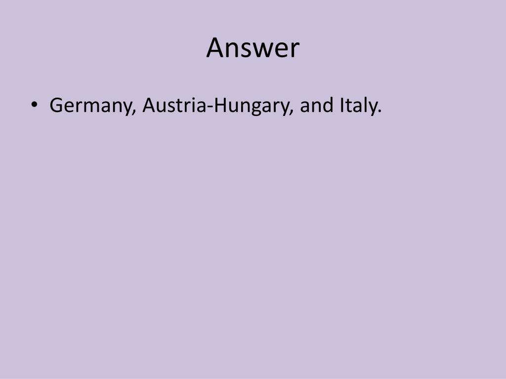 Chapter 6. Test Review. Question. In 1914 which country had the smallest number of troops when entering World War I?. Answer. The United States. Question. What Nations were part of the Triple Alliance?. Answer. Germany, Austria-Hungary, and Italy. Question.