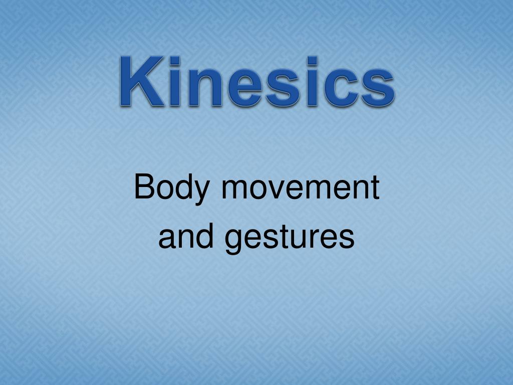 Kinesics. Body movement and gestures. Movement communicates meaning. “Actions speak louder than words” Movement reflects one’s state of arousal animated, energetic lethargic, lackluster Reciprocal relationship Our mood affects our behavior, but our behavior also affects our mood. smiling