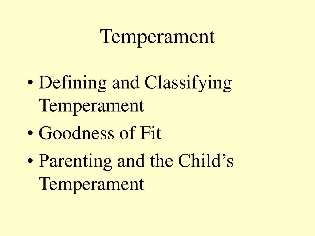 Temperament Defining and Classifying Temperament Goodness of Fit Parenting and the Child’s Temperament
