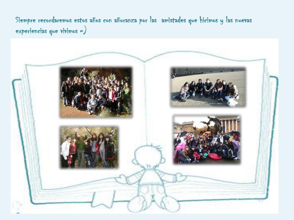 Siempre recordaremos estos años con añoranza por las amistades que hicimos y las nuevas experiencias que vivimos =)