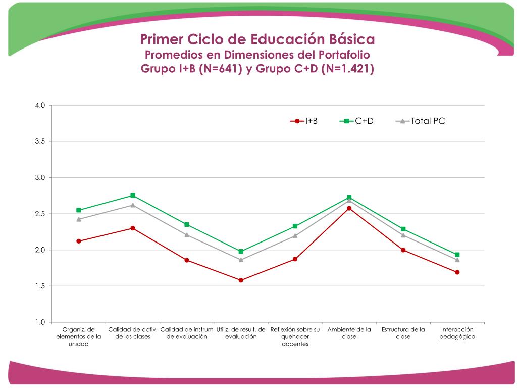 Primer Ciclo de Educación BásicaPromedios en Dimensiones del PortafolioGrupo I+B (N=641) y Grupo C+D (N=1.421)