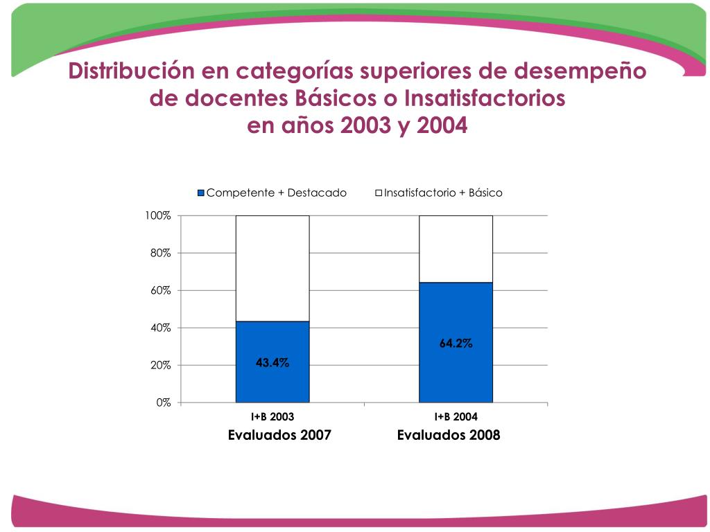 Distribución en categorías superiores de desempeño de docentes Básicos o Insatisfactoriosen años 2003 y 2004