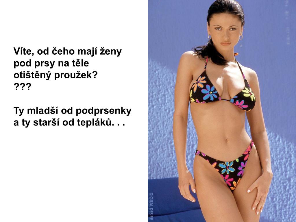 Víte, od čeho mají ženy pod prsy na těle otištěný proužek???? Ty mladší od podprsenky a ty starší od tepláků. . .