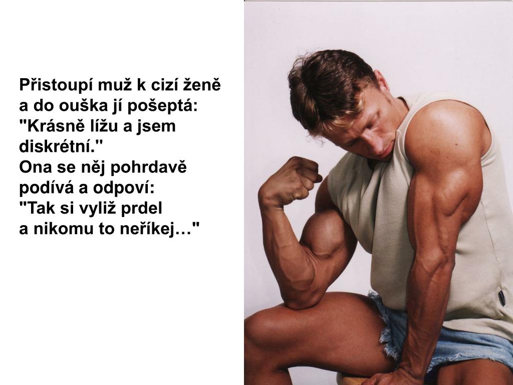 Přistoupí muž k cizí ženě a do ouška jí pošeptá: "Krásně lížu a jsem diskrétní." Ona se něj pohrdavě podívá a odpoví: "Tak si vyliž prdel a nikomu to neříkej…"