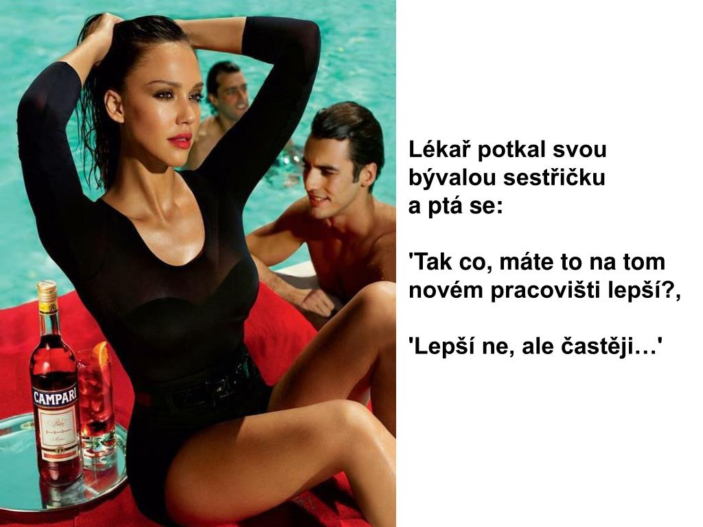 Lékař potkal svou bývalou sestřičku a ptá se: 'Tak co, máte to na tom novém pracovišti lepší?‚ 'Lepší ne, ale častěji…'