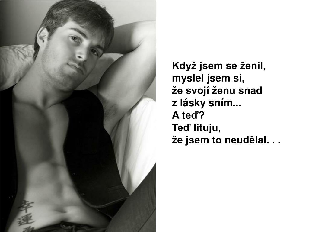 Když jsem se ženil, myslel jsem si, že svojí ženu snad z lásky sním...A teď?Teď lituju, že jsem to neudělal. . .