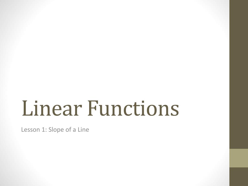 Linear Functions. Lesson 1: Slope of a Line . Today’s Objectives. Demonstrate an understanding of slope with respect to: rise and run; rate of change; and line segments and lines, including: Determine the slope of a line or line segment using rise and run