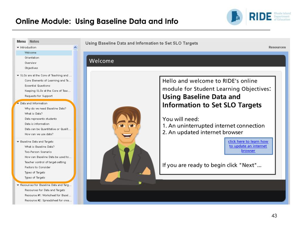 SLO Process: Baseline Data and Targets MoSL p. 7 RI p. 13