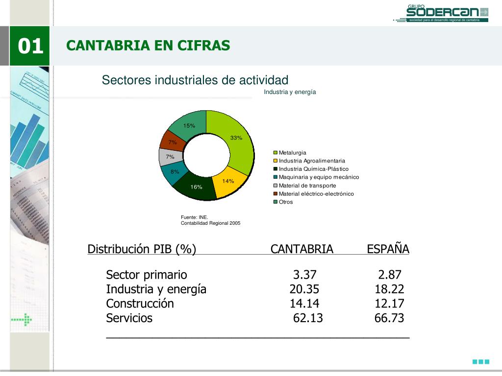 01 CANTABRIA EN CIFRAS Sectores industriales de actividad Industria y energía Fuente: INE. Contabilidad Regional 2005