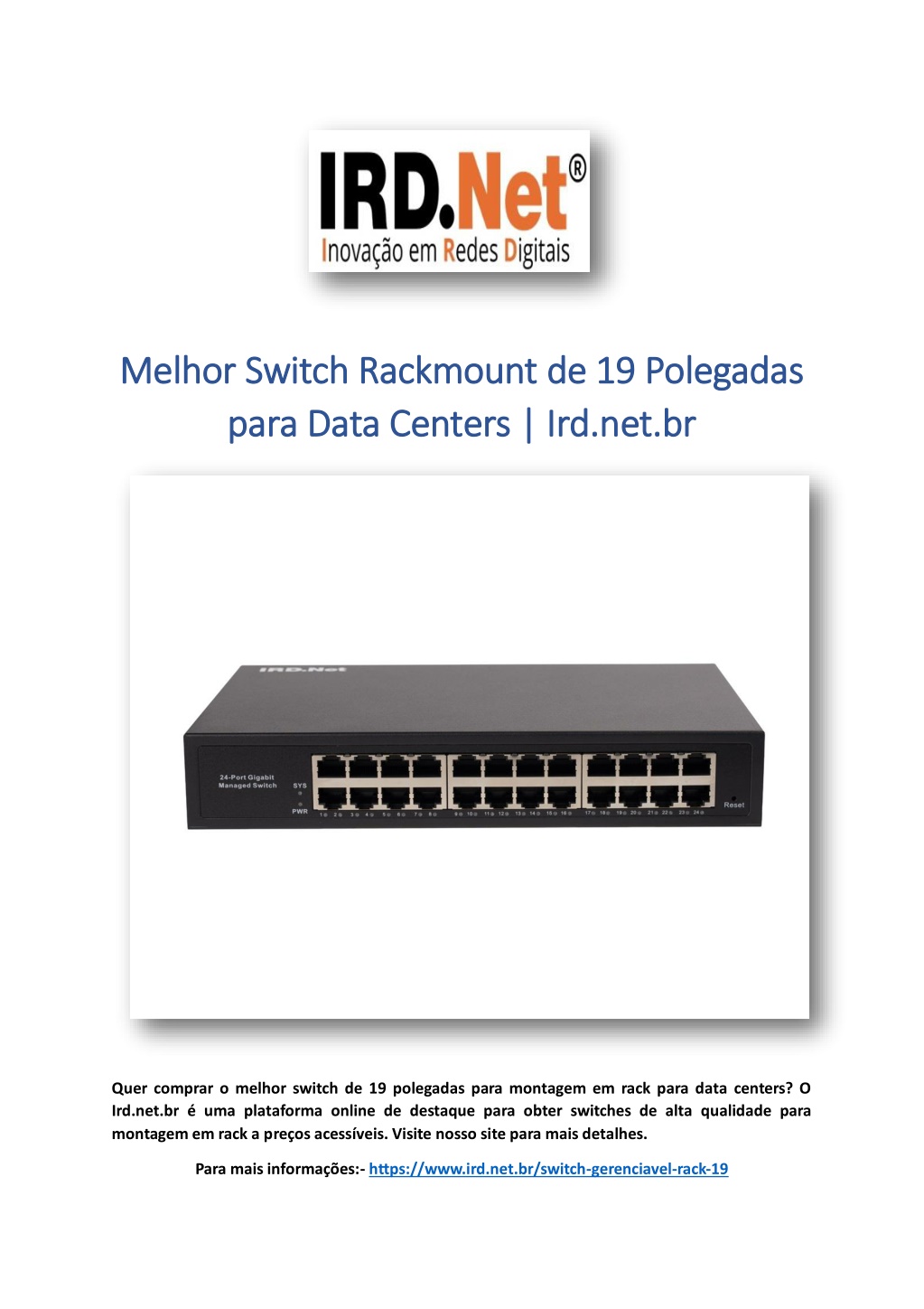 Quer comprar o melhor switch de 19 polegadas para montagem em rack para data centers? O Ird.net.br u00e9 uma plataforma online de destaque para obter switches de alta qualidade para montagem em rack a preu00e7os acessu00edveis. Visite nosso site para mais detalhes.