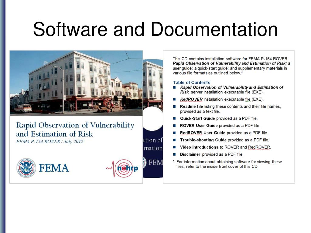 Topics The following will be covered: • Executive summary • Background: FEMA 154 and ATC-20 • How ROVER works and its features • Support and training of ROVER users • Additional resources