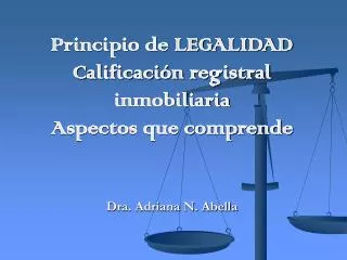 Principio de LEGALIDADCalificación registral inmobiliariaAspectos que comprendeDra. Adriana N. Abella