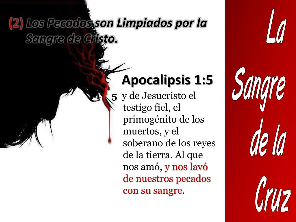 La Sangre de la Cruz (2) Los Pecados son Limpiados por la Sangre de Cristo. Apocalipsis 1:5 5 y de Jesucristo el testigo fiel, el primogénito de los muertos, y el soberano de los reyes de la tierra. Al que nos amó, y nos lavó de nuestros pecados con su sangre.