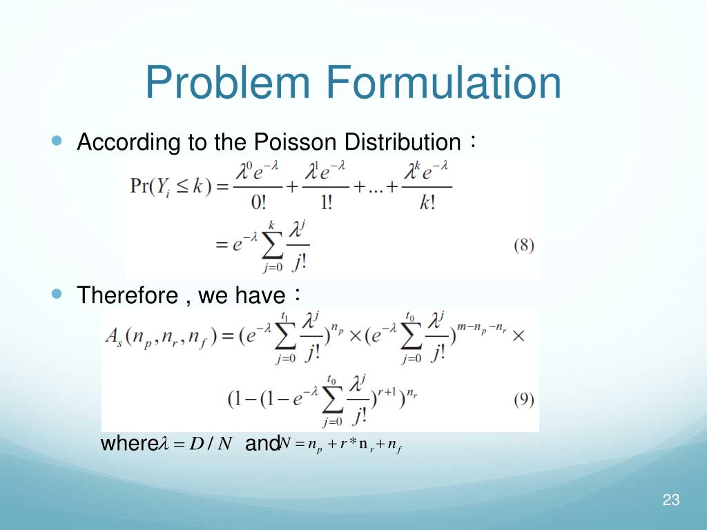 Problem Formulation • According to the Poisson Distribution: • Therefore , we have: where and