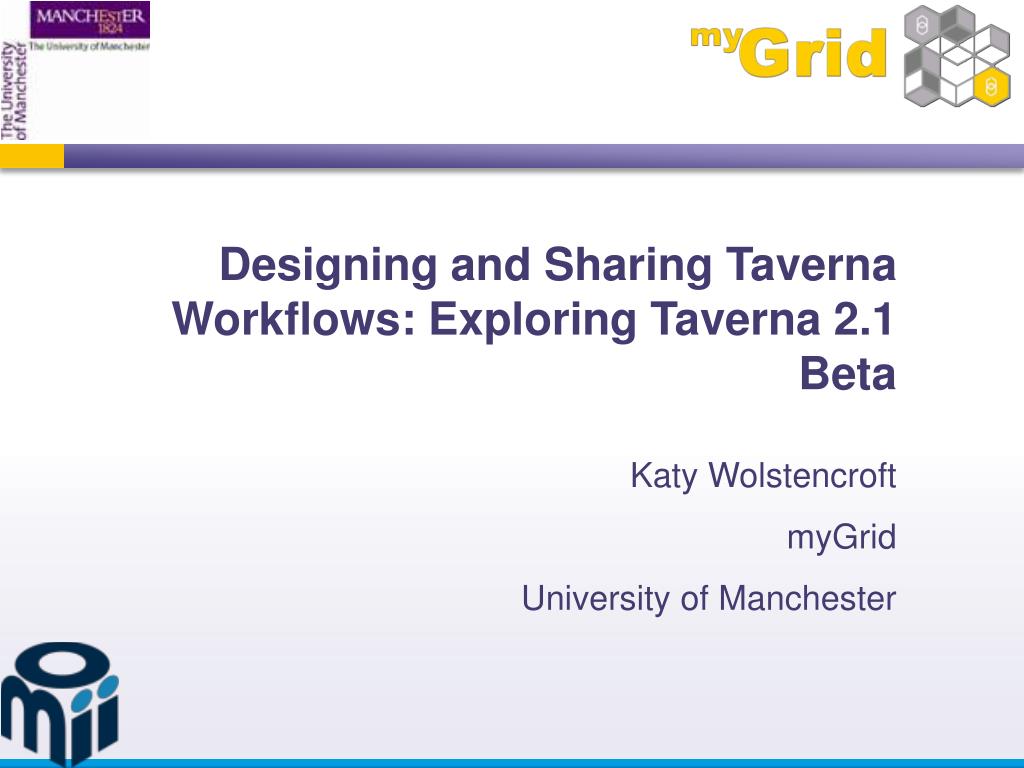 Designing and Sharing Taverna Workflows: Exploring Taverna 2.1 Beta Katy Wolstencroft myGrid University of Manchester