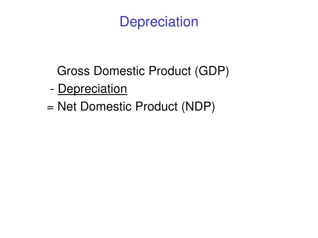 Depreciation Gross Domestic Product (GDP) - Depreciation = Net Domestic Product (NDP)