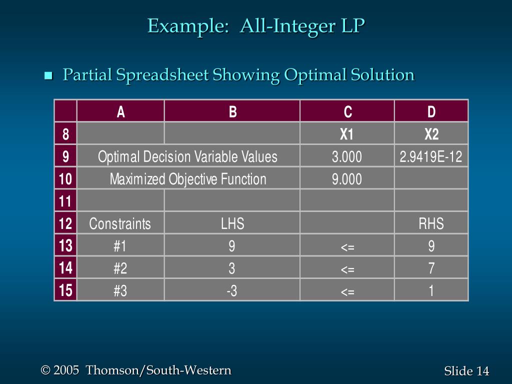 Example: All-Integer LP • Partial Spreadsheet Showing Optimal Solution