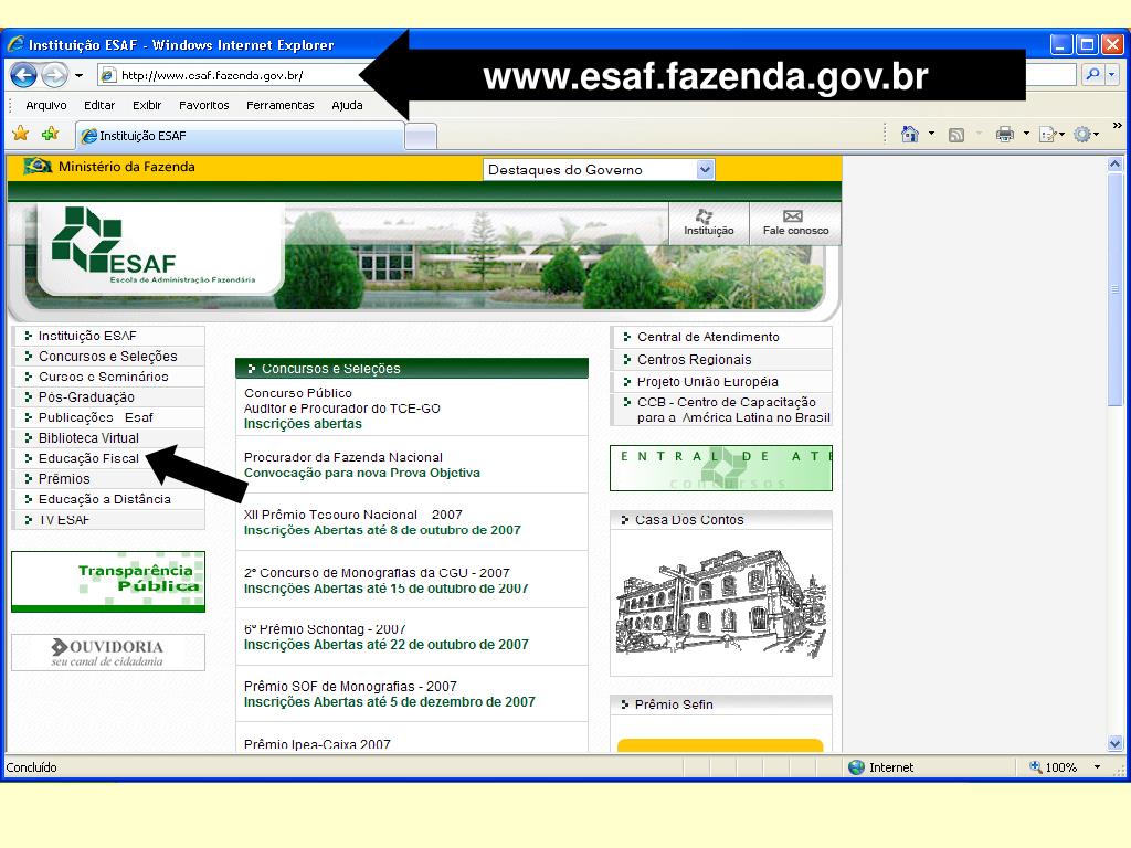 Programa Nacional de Educación Fiscal PNEF - Brasil Site Escola de Administração Fazendária : www.esaf.fazenda.gov.br