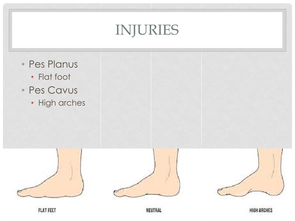 Injuries • PesPlanus • Flat foot • PesCavus • High arches