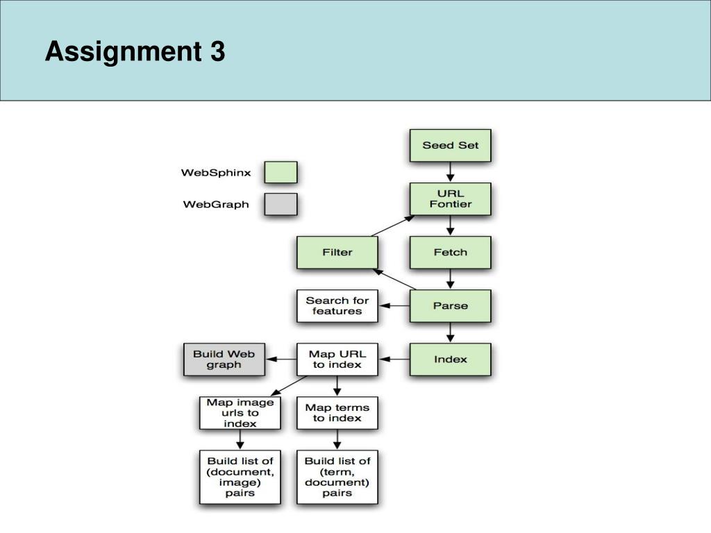 Websphinx & Webgraph. Inf 141 Information Retrieval Winter 2008. Assignment 3. See course webpage for specifications Due Friday Feb 8 th Working in groups of 2-3 people Email with subject: Inf 141 Team Registration Train your group