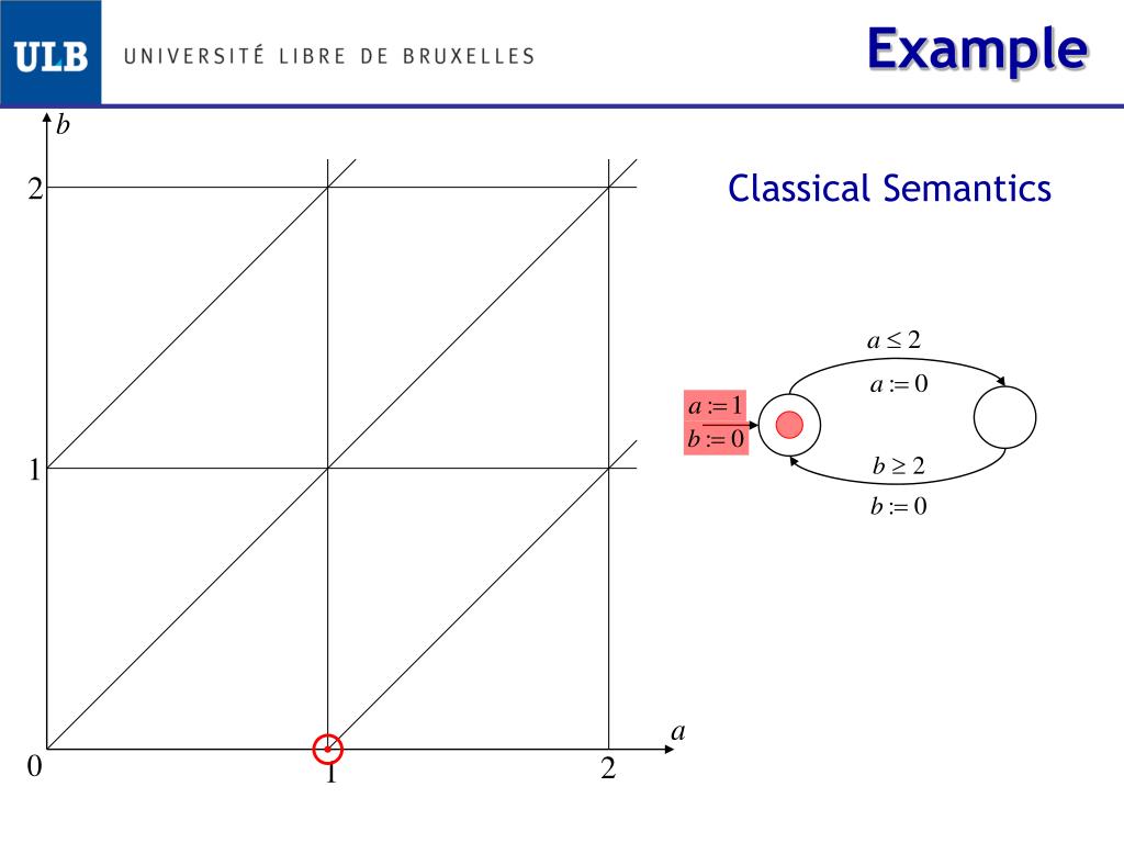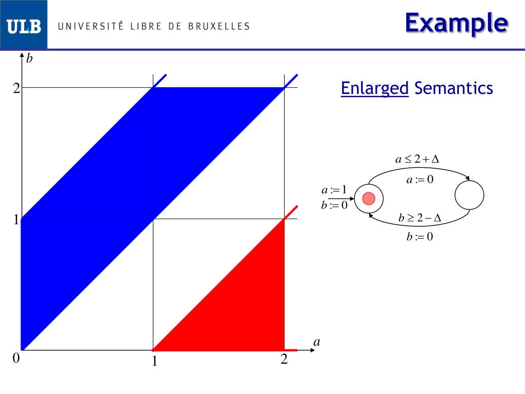 Example Classical semantics [A] • Black cycles are reachable • Blue cycles are not ! [A] Enlarged semantics • One blue cycle is reachable • By repeating this cycle with Δ>0, the entire regions are reachable !