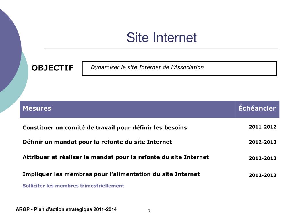 Site Internet OBJECTIF ARGP - Plan d'action stratégique 2011-2014 7