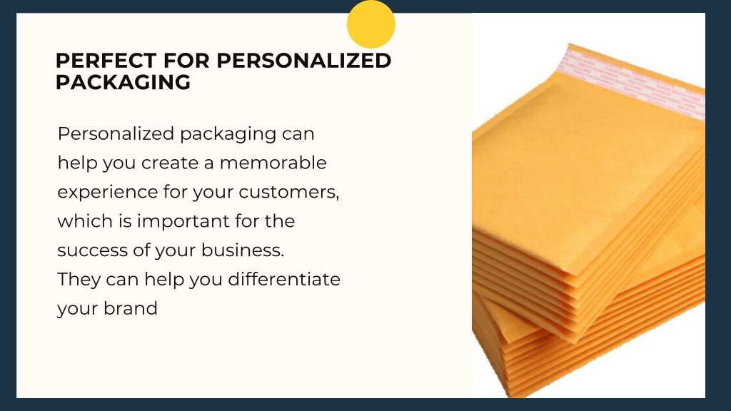 PERFECT FOR PERSONALIZED PACKAGING Personalized packaging can help you create a memorable experience for your customers, which is important for the success of your business. They can help you differentiate your brand