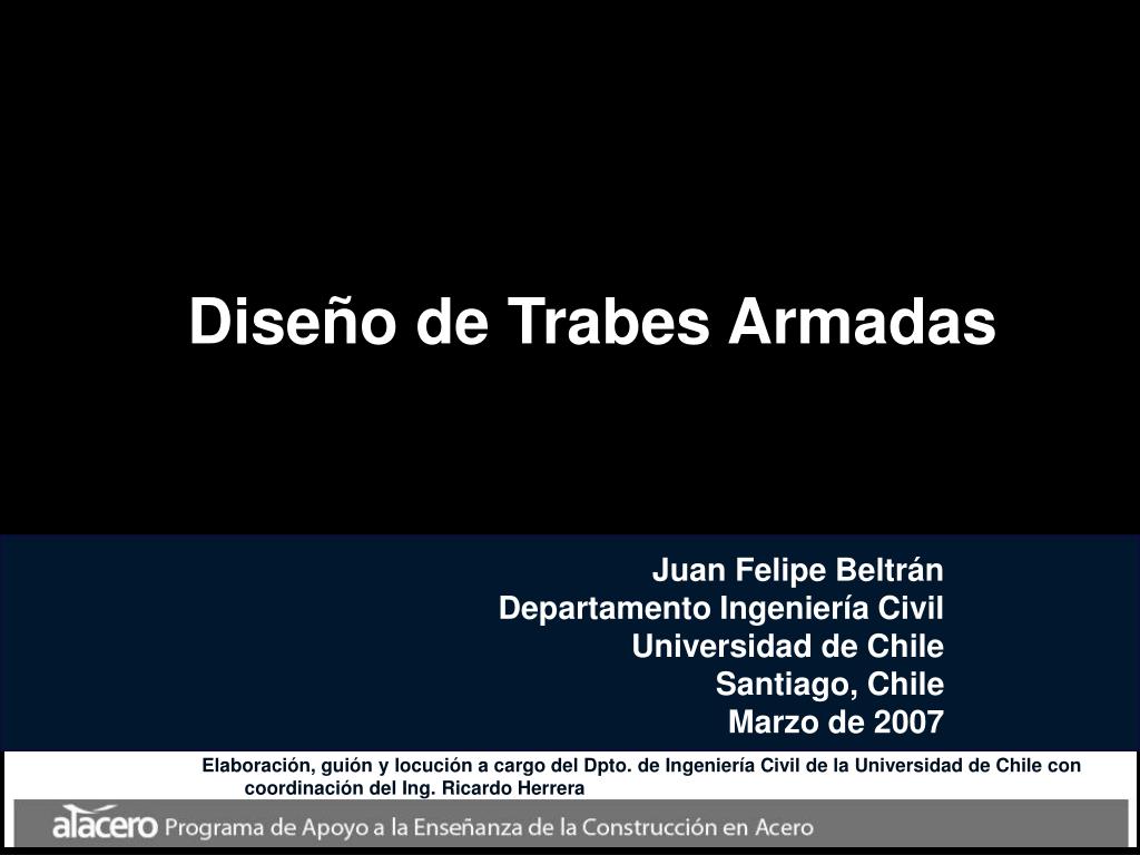 Diseño de Trabes Armadas Juan Felipe Beltrán Departamento Ingeniería Civil Universidad de Chile Santiago, Chile Marzo de 2007 Elaboración, guión y locución a cargo del Dpto. de Ingeniería Civil de la Universidad de Chile con coordinación del Ing. Ricardo Herrera