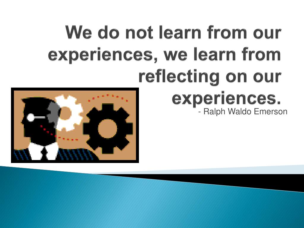 We do not learn from our experiences, we learn from reflecting on our experiences. - Ralph Waldo Emerson