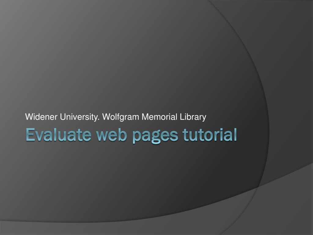 Widener University. Wolfgram Memorial Library Evaluate web pages tutorial