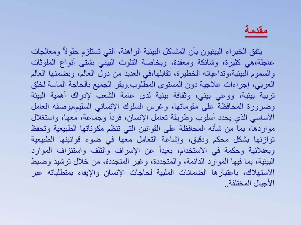 مقدمة يتفق الخبراء البيئيون بأن المشاكل البيئية الراهنة، التي تستلزم حلولاً ومعالجات عاجلة،هي كثيرة، وشائكة ومعقدة، وبخاصة التلوث البيئي بشتى أنواع الملوثات والسموم البيئية،وتداعياته الخطيرة، تقابلها،في العديد من دول العالم، وبضمنها العالم العربي، إجراءات علاجية دون المستوى المطلوب.ويقر الجميع بالحاجة الماسة لخلق تربية بيئية، ووعي بيئي، وثقافة بيئية لدى عامة الشعب لإدراك أهمية البيئة وضرورة المحافظة على مقوماتها، وغرس السلوك الإنساني السليم،بوصفه العامل الأساسي الذي يحدد أسلوب وطريقة تعامل الإنسان، فرداً وجماعة، معها، واستغلال مواردها، بما من شأنه المحافظة على القوانين التي تنظم مكوناتها الطبيعية وتحفظ توازنها بشكل محكم ودقيق، وإشاعة التعامل معها في ضوء قوانينها الطبيعية وبعقلانية وحكمة في الاستخدام، بعيداً عن الإسراف والتلف واستنزاف الموارد البيئية، بما فيها الموارد الدائمة، والمتجددة، وغير المتجددة، من خلال ترشيد وضبط الاستهلاك، باعتبارها الضمانات الملبية لحاجات الإنسان والإيفاء بمتطلباته عبر الأجيال المختلفة..