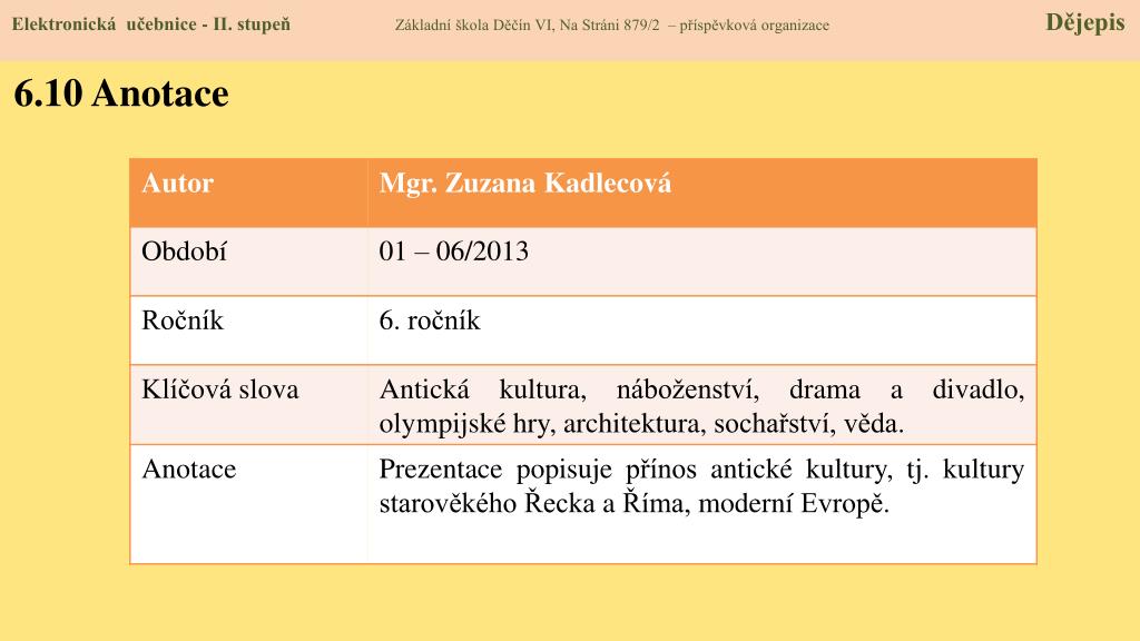 Elektronická učebnice - II. stupeň Základní škola Děčín VI, Na Stráni 879/2 – příspěvková organizace Dějepis 6.10 Anotace
