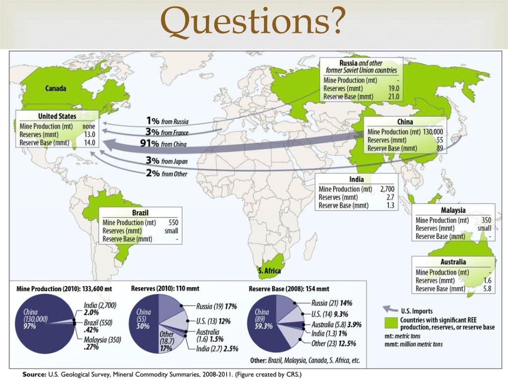 Does the WTO have the right to step in? • Do foreign investors have ground to stand on when telling China they have to sell their own resources? • China’s decrease in exportation of rare earth metals was quoted as “an effort to stop over-mining and to preserve the environment from the harmful effects of mining for rare earth metals.” • China’s resources vs. Global Use