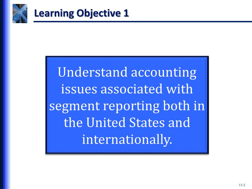 Learning Objective 1 Understand accounting issues associated with segment reporting both in the United States and internationally.