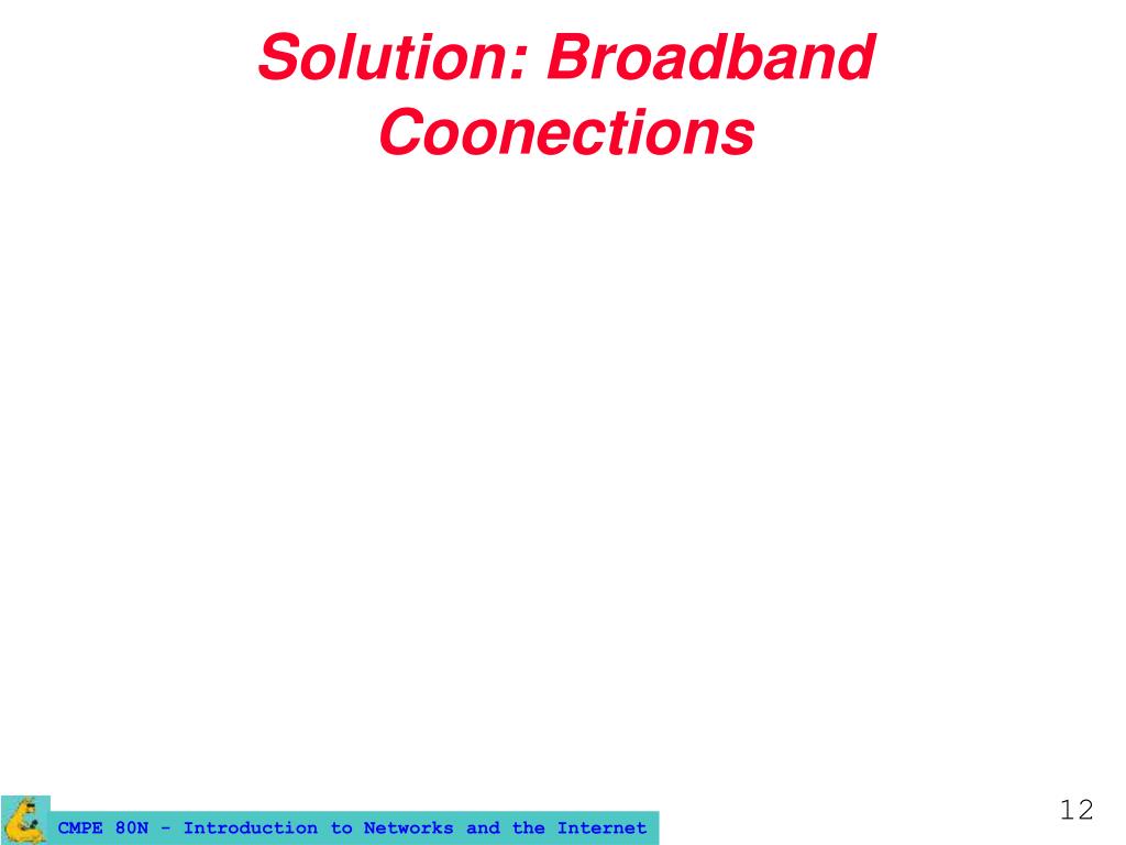 ISDN (cont’d) • ISDN was initiated in 1984, and was available in the USA in the early 90s. • It was an attempt to replace the analog phone system with a digital voice+data system. • It never really succeeded… • Currently, ISDN is obsolete, because it offers limited bitrate at a fairly high price. • Still a possibility for Internet connection where other forms of broadband are not available.