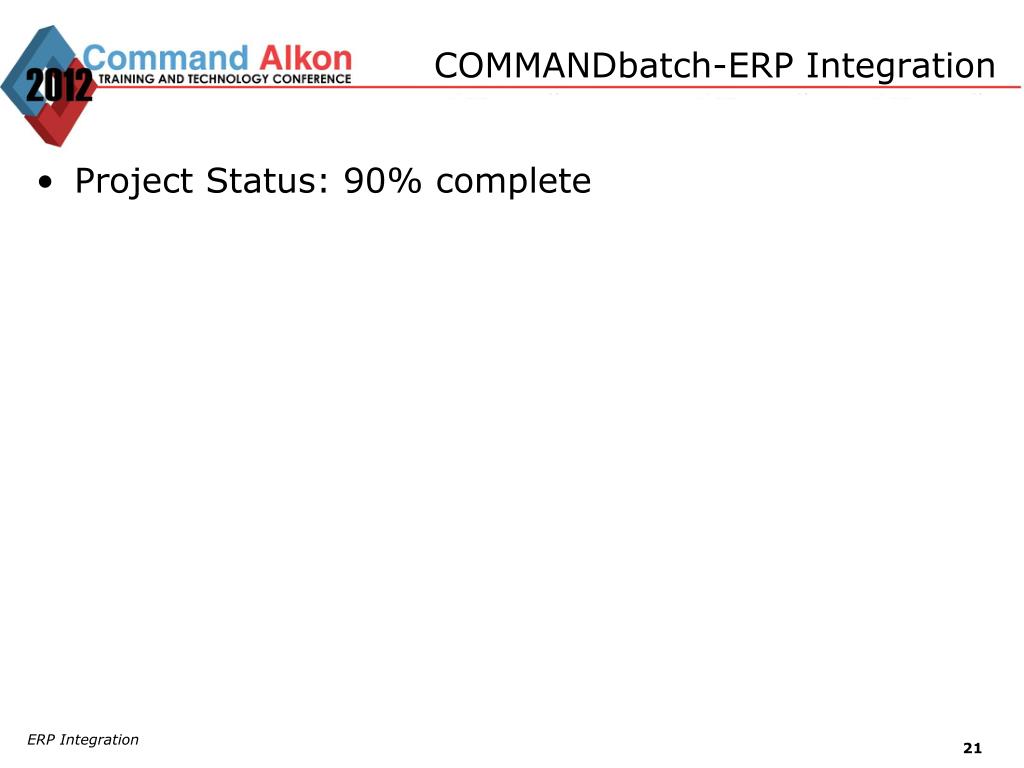 COMMANDbatch-ERP Integration • Project Status: 90% complete ERP Integration