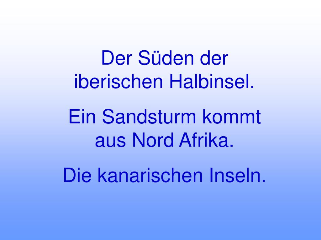 Der Süden der iberischen Halbinsel. Ein Sandsturm kommt aus Nord Afrika. Die kanarischen Inseln.