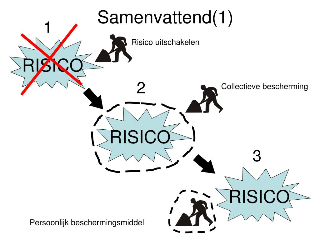 RISICO RISICO RISICO Samenvattend(1) 1 Risico uitschakelen 2 Collectieve bescherming 3 Persoonlijk beschermingsmiddel
